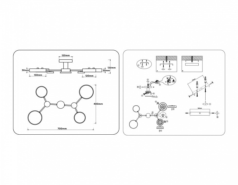 Основная форма светильника (Для подвесных люстр, потолочных люстр и подвесных светильников): Несколько плафонов