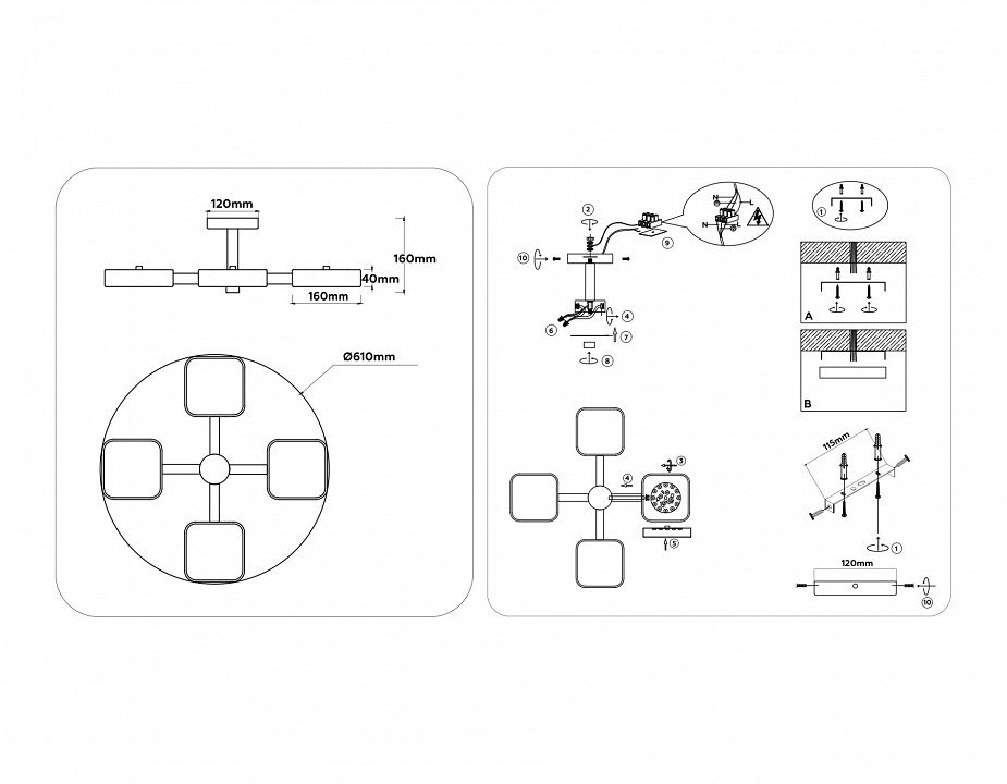 Основная форма светильника (Для подвесных люстр, потолочных люстр и подвесных светильников): Несколько плафонов