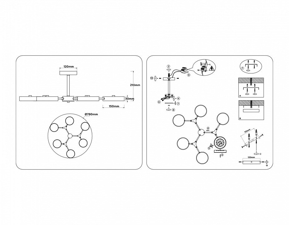 Основная форма светильника (Для подвесных люстр, потолочных люстр и подвесных светильников): Несколько плафонов