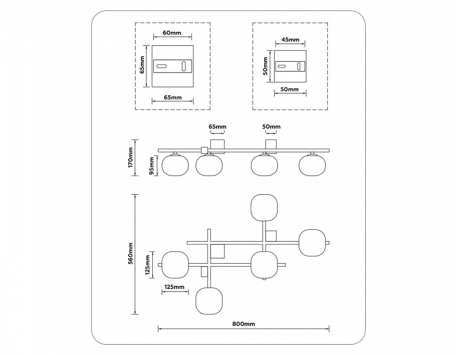Точная форма - Несколько плафонов (Для подвесных люстр, потолочных люстр и подвесных светильников): Плафоны симметрично вдоль горизонтальной оси