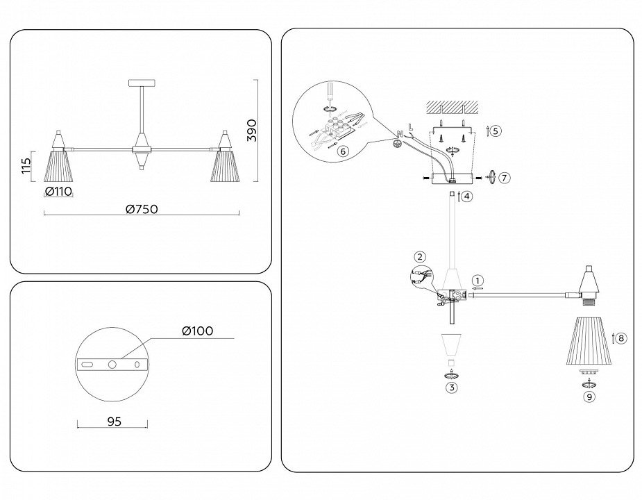 Основная форма светильника (Для подвесных люстр, потолочных люстр и подвесных светильников): Несколько плафонов