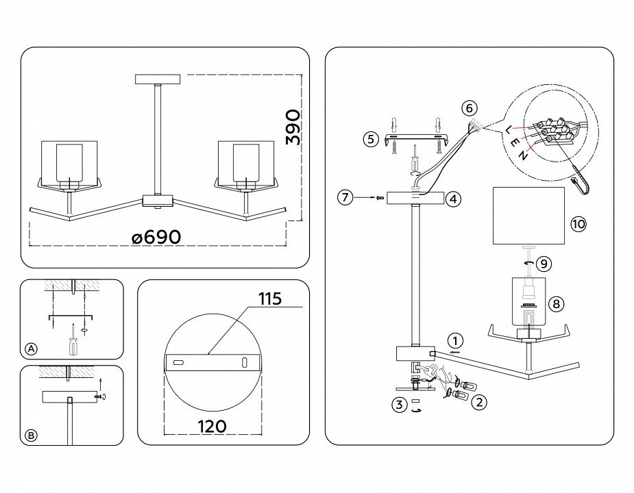 Основная форма светильника (Для подвесных люстр, потолочных люстр и подвесных светильников): Несколько плафонов