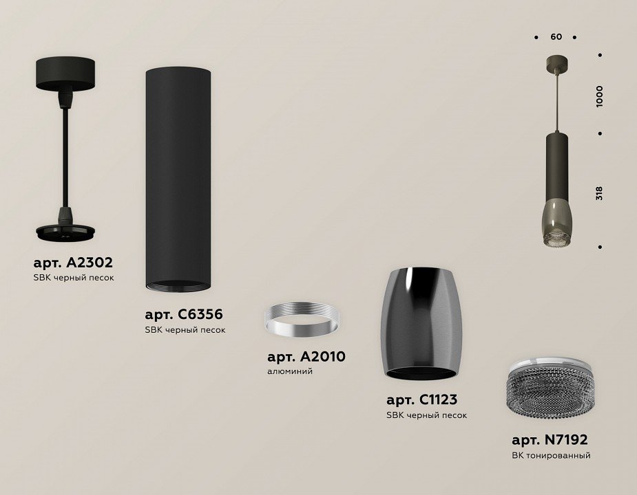 Компоненты, входящие в комплект: крепеж подвесной d60. корпус d60-70. коннектор. корпус d60. насадка передня d70