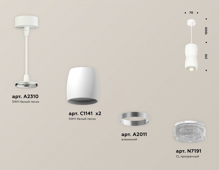 Компоненты, входящие в комплект: крепеж подвесной d60. корпус d60-70 2шт. коннектор. насадка передня d70