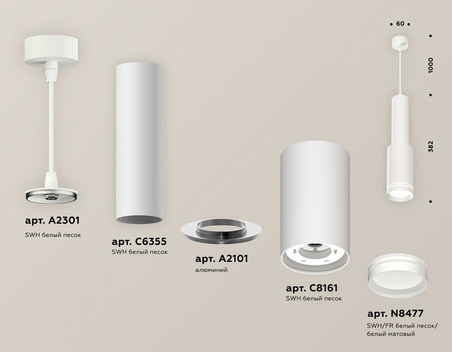 Компоненты, входящие в комплект: крепеж подвесной d60. . корпус d60. . коннектор d60-d85. корпус накладной d85. насадка передня d85