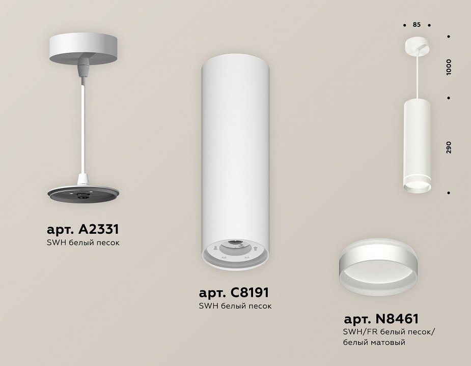 Компоненты, входящие в комплект: крепеж подвесной d85. корпус накладной d85. насадка передняя d85