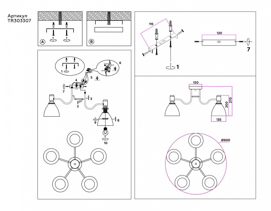 Наличие ламп в комплекте: лампы в комплект не входят