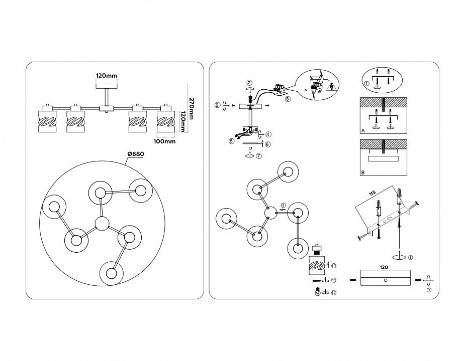 Основная форма светильника (Для подвесных люстр, потолочных люстр и подвесных светильников): Несколько плафонов