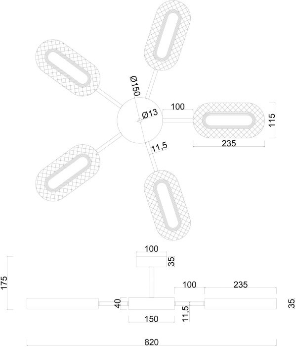 Основная форма светильника (Для подвесных люстр, потолочных люстр и подвесных светильников): Без плафонов
