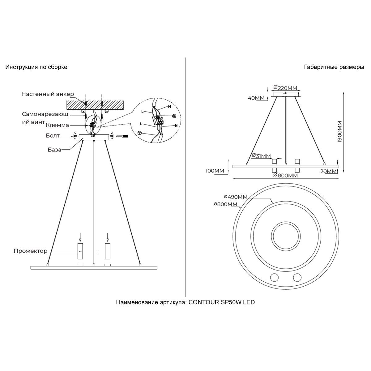Длина подвеса, мм: 1800
