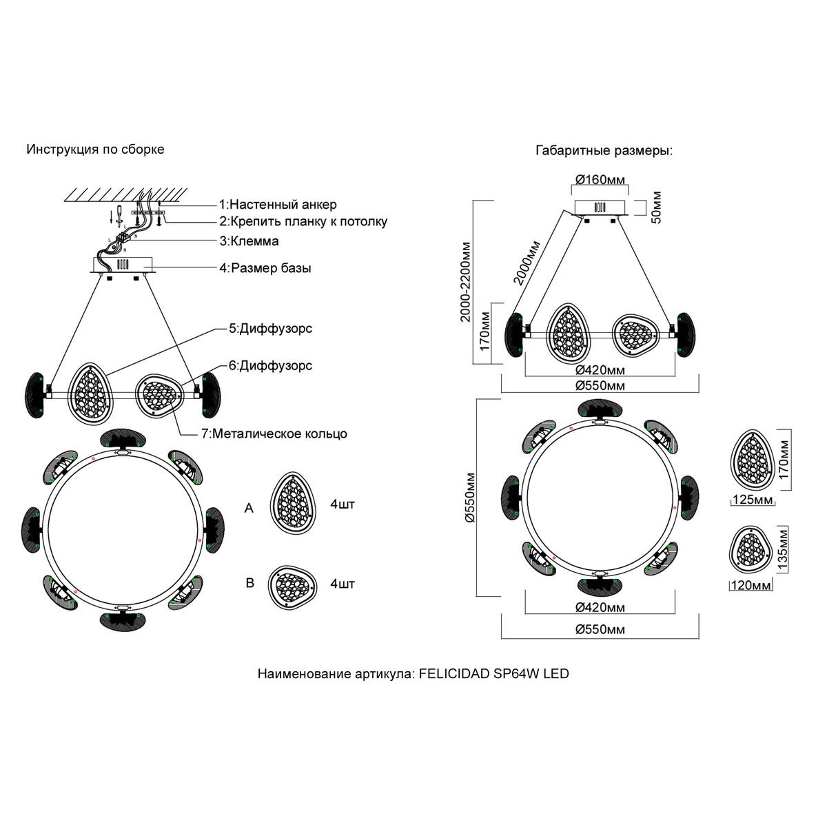 Точная форма - Несколько плафонов (Для подвесных люстр, потолочных люстр и подвесных светильников): Плафоны на кольце