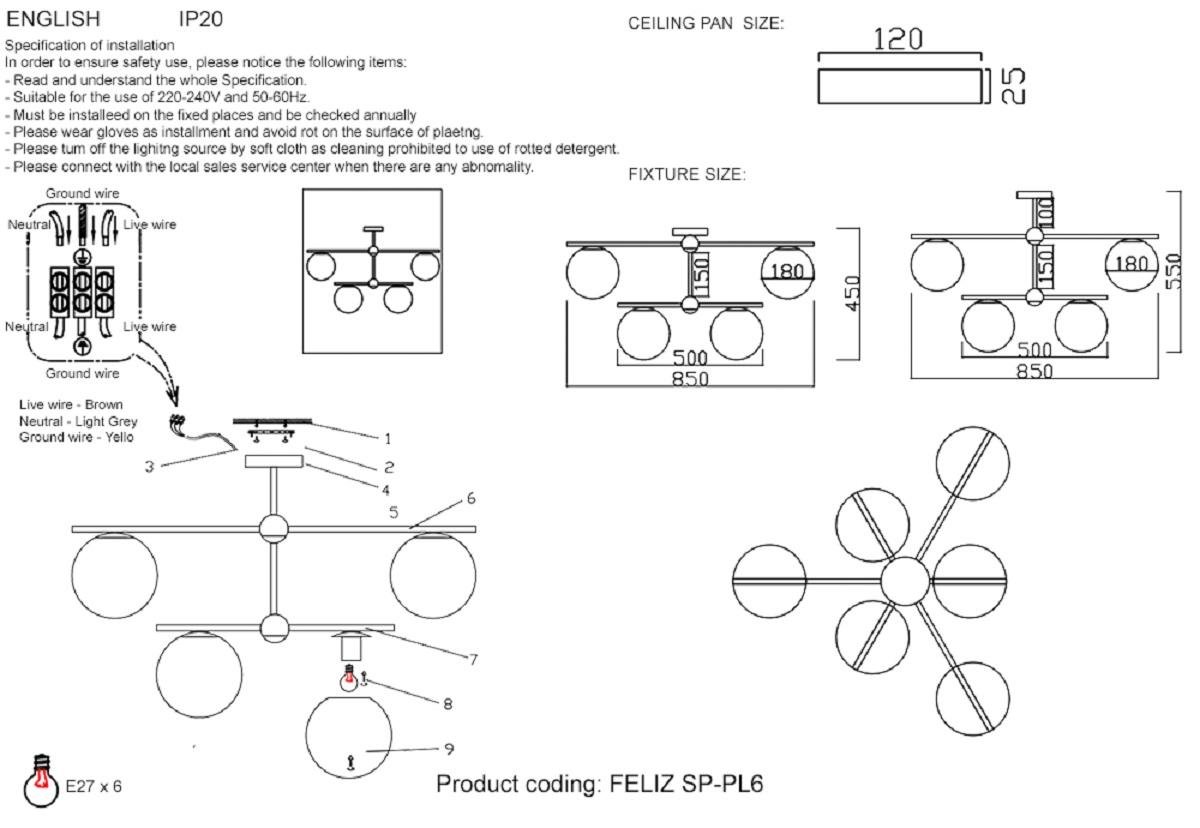 Станьте первым, кто оставит отзыв о товаре Подвесная люстра Crystal Lux FELIZ SP-PL6 BRONZE/WHITE.