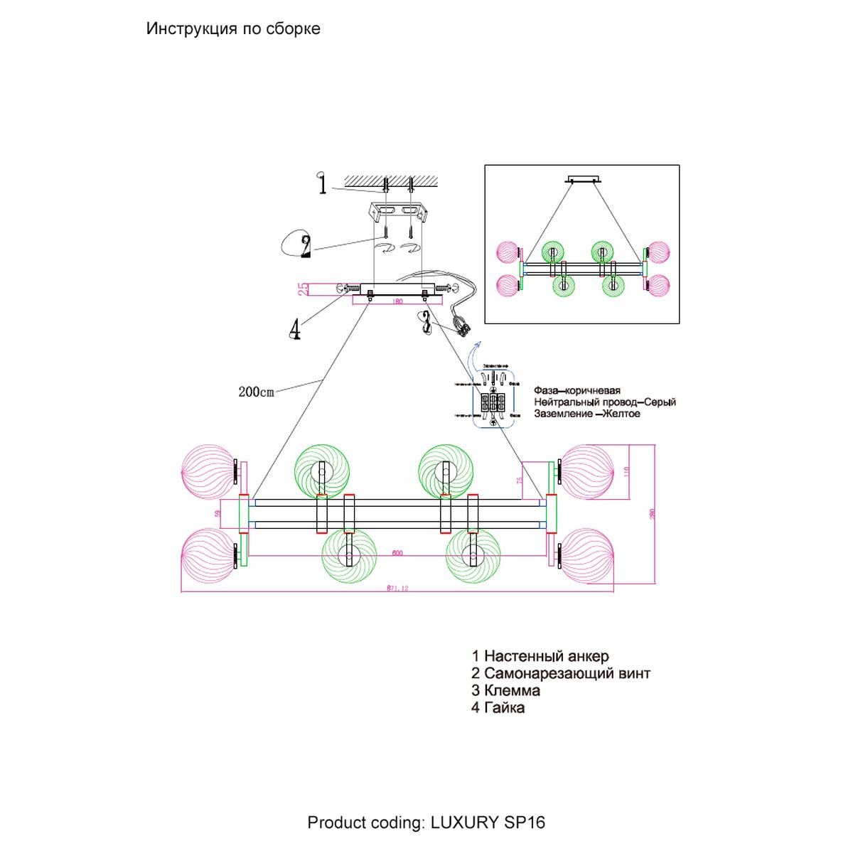Длина подвеса, мм: 2000