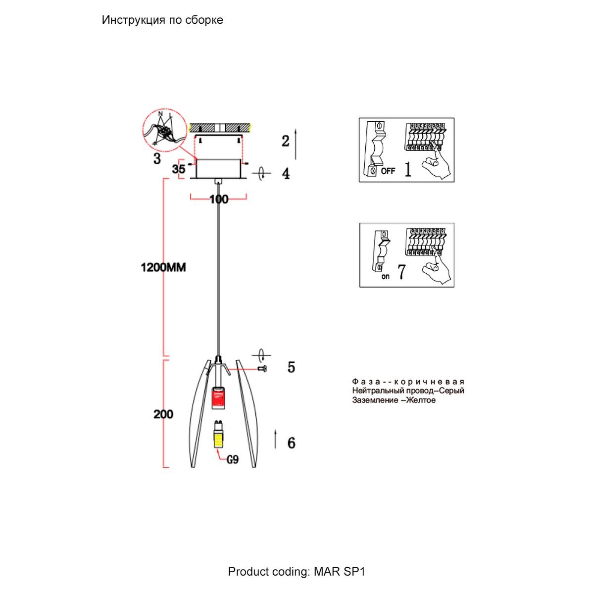 Длина подвеса, мм: 1200
