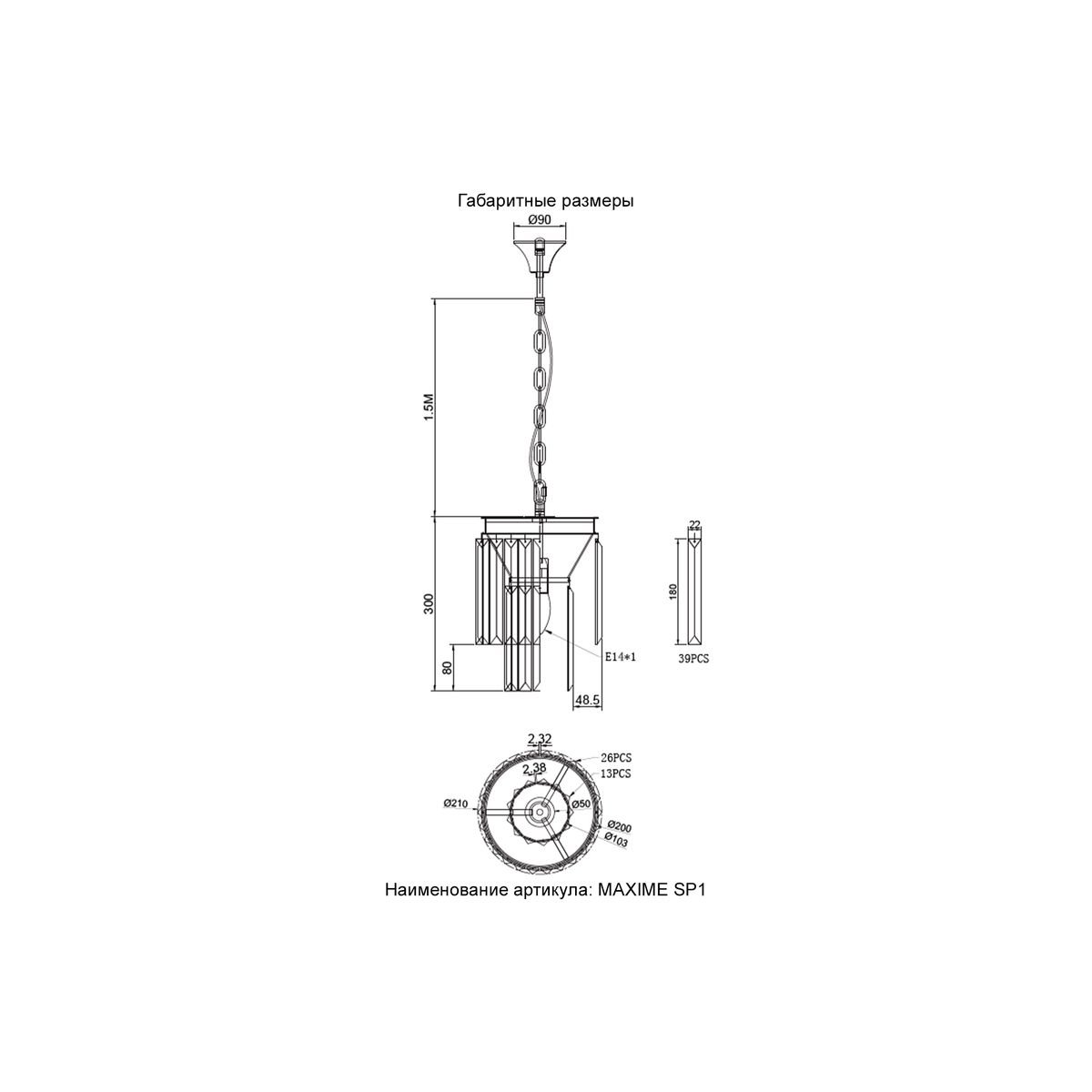 Главная Люстры и потолочные светильники Подвесной светильник Crystal Lux MAXIME SP1 BLACK