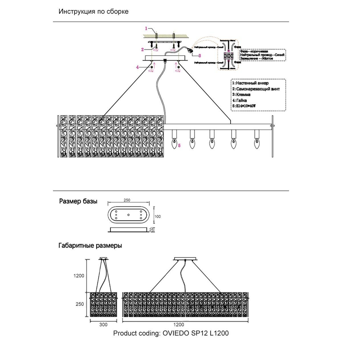 Длина подвеса, мм: 1200