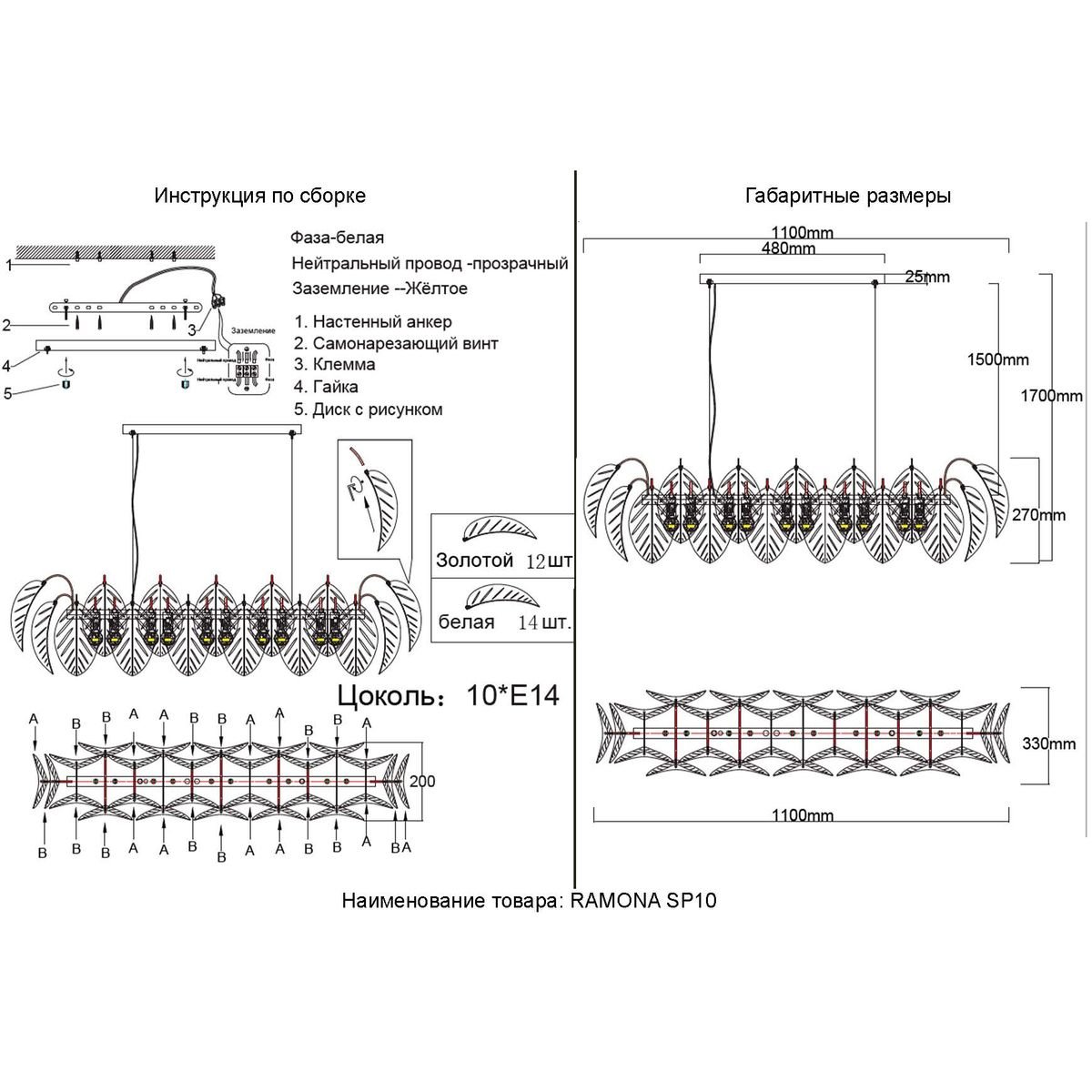 Станьте первым, кто оставит отзыв о товаре Подвесная люстра с листочками Crystal Lux RAMONA SP10.