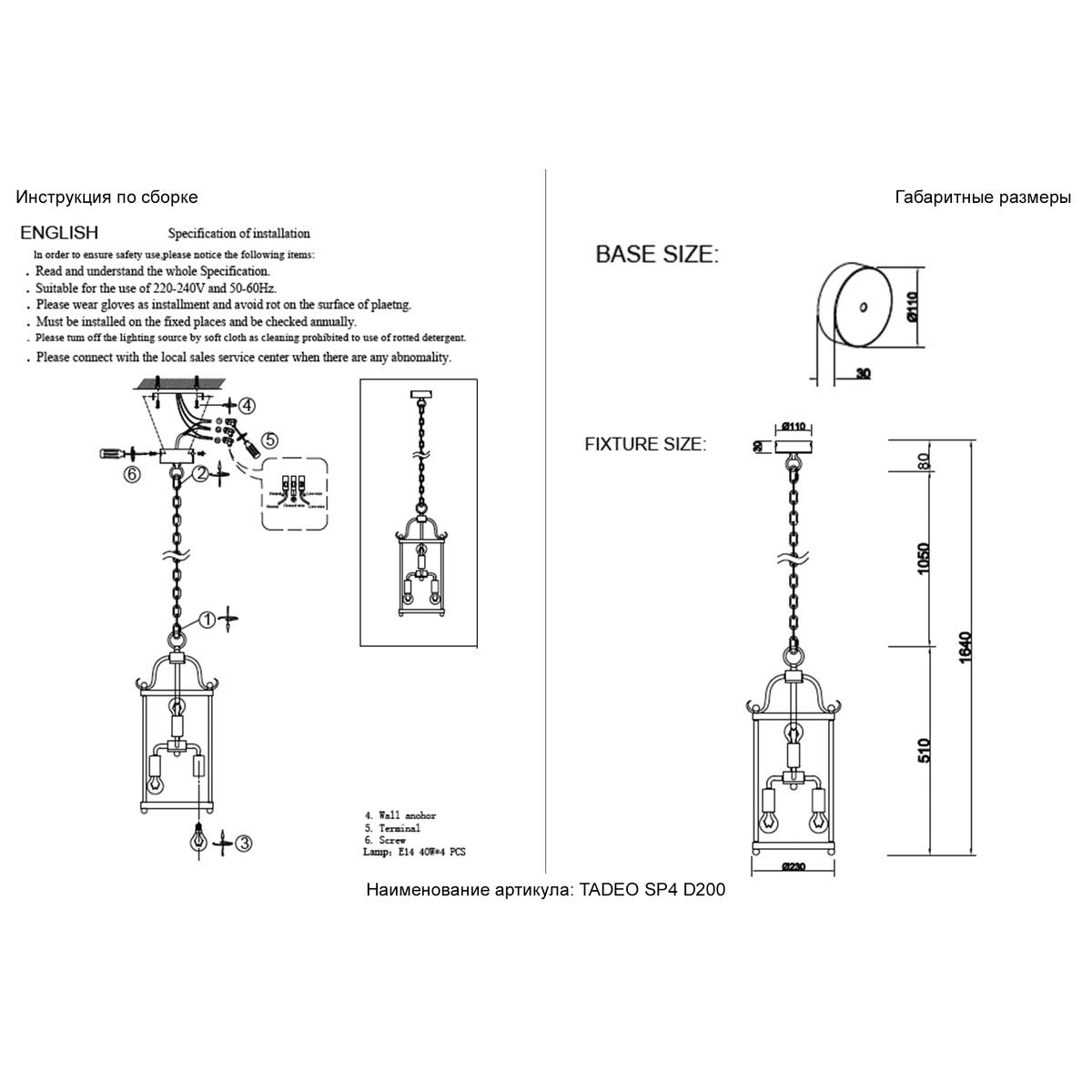Тип светильника: подвесная люстра