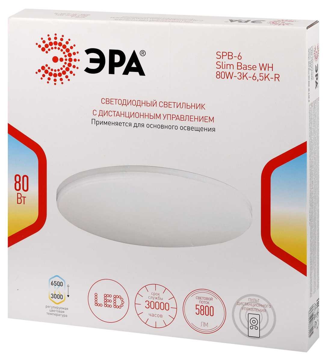 Станьте первым, кто оставит отзыв о товаре Светильник потолочный светодиодный ЭРА Классик с ДУ SPB-6 WH 80W-3K-6,5K-R Slim Base Б0069764.