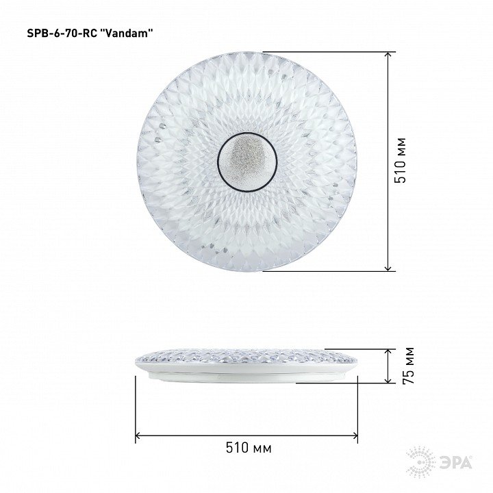Главная Люстры и потолочные светильники Потолочный светодиодный светильник ЭРА SPB-6-70-RC Vandam Б0051100