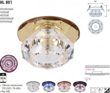 Тип поверхности плафонов: прозрачный