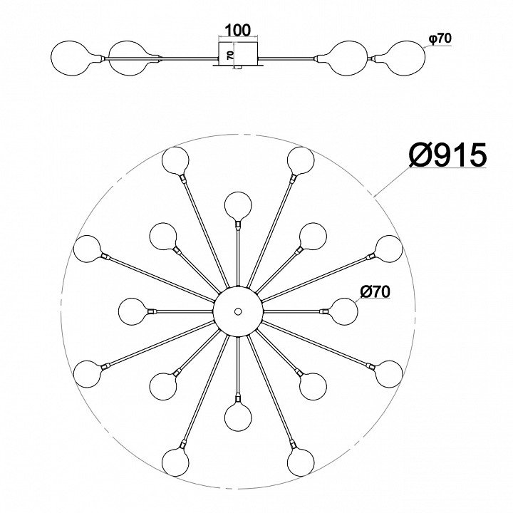 Основная форма светильника (Для подвесных люстр, потолочных люстр и подвесных светильников): Несколько плафонов