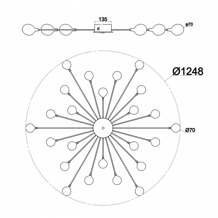 Основная форма светильника (Для подвесных люстр, потолочных люстр и подвесных светильников): Несколько плафонов