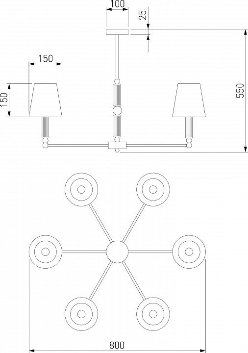 Тип крепления люстры: на штанге