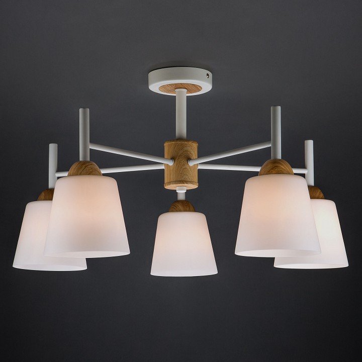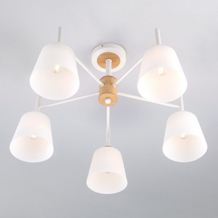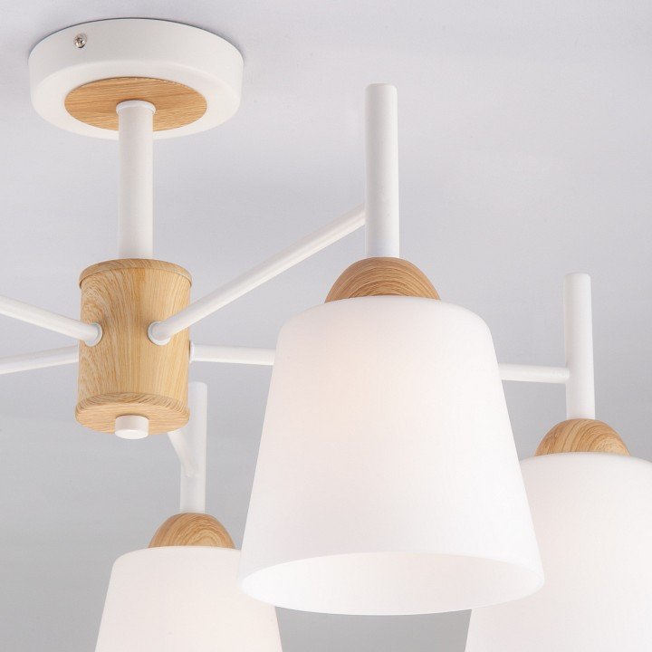 Эта люстра в скандинавском стиле отлично вписывается в интерьер и создаёт мягкое, равномерное освещение. Матовый белый стеклянный плафон и сочетание дерева с металлом придают ей стиль и надёжность. Удобна в установке и поддерживает диммер для регулировки яркости. Очень доволен покупкой!