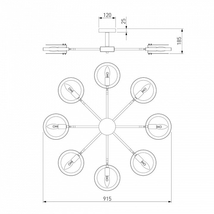 Основная форма светильника (Для подвесных люстр, потолочных люстр и подвесных светильников): Без плафонов