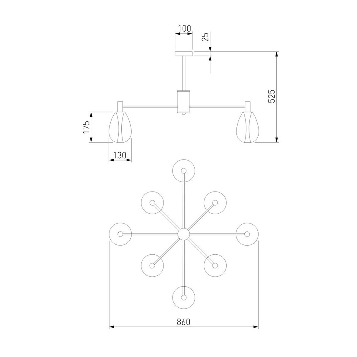 Основная форма светильника (Для подвесных люстр, потолочных люстр и подвесных светильников): Несколько плафонов