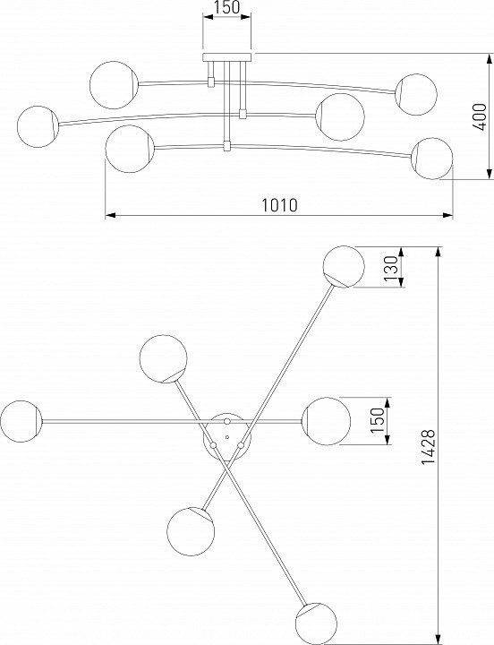 Основная форма светильника (Для подвесных люстр, потолочных люстр и подвесных светильников): Несколько плафонов