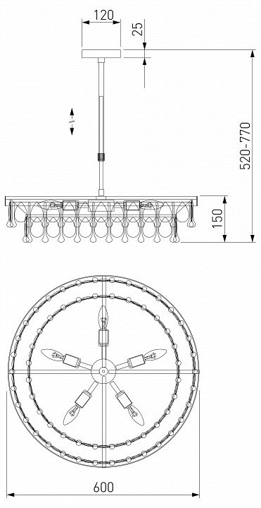 Тип крепления люстры: на штанге