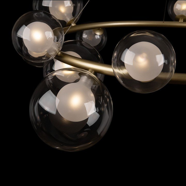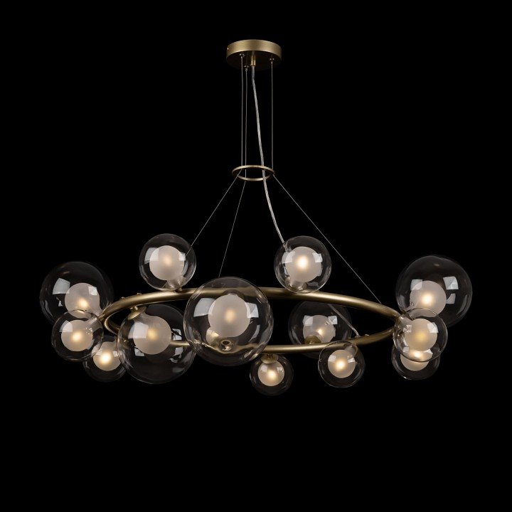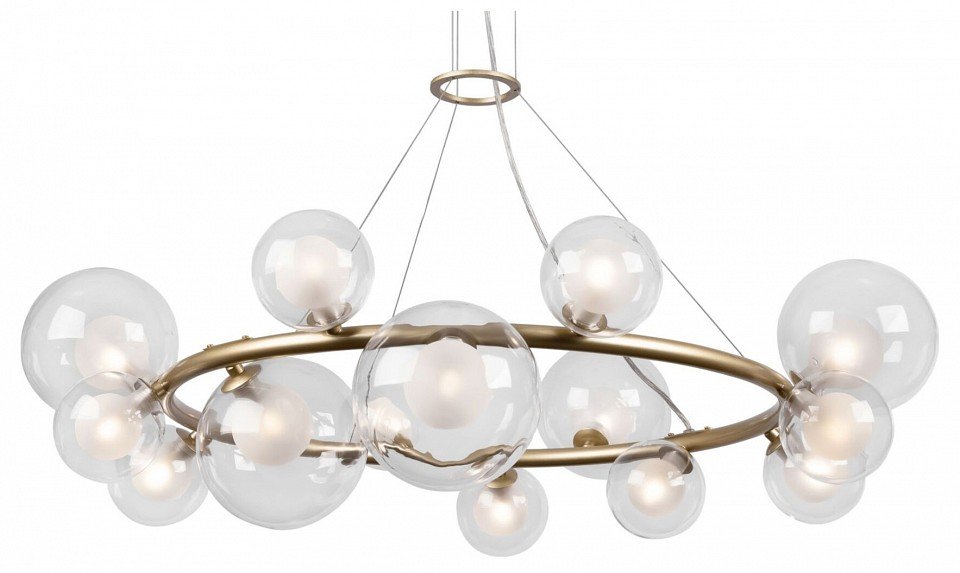 Люстра смотрится стильно и дорого. Все 14 плафонов сделаны из качественного матового и прозрачного стекла. Матовая золотая арматура и хромированные детали отлично сочетаются. Установили быстро, люстра не такая громоздкая, как казалась на картинке. Спасибо, что есть гарантия 2 года!
