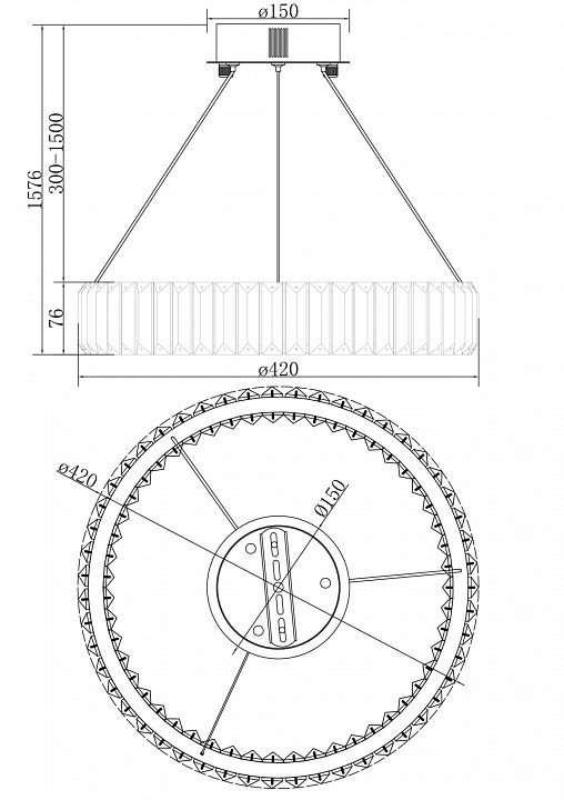 Длина подвеса, мм: 1500