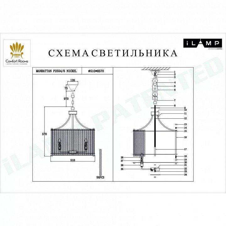 Станьте первым, кто оставит отзыв о товаре Подвесная люстра iLamp Manhattan P2554-6 NIC.
