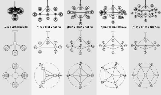 Точная форма - Несколько плафонов (Для подвесных люстр, потолочных люстр и подвесных светильников): Плафоны в разные стороны