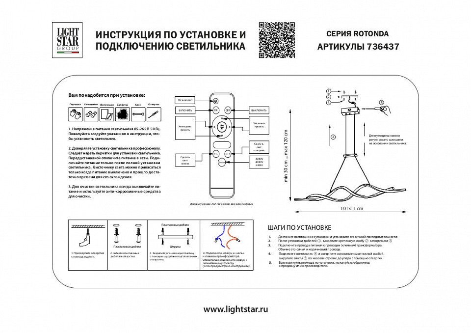 Наличие выключателя, диммера или пульта ДУ: пульт ДУ