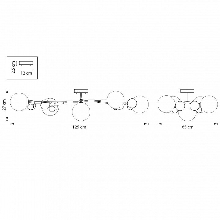 Основная форма светильника (Для подвесных люстр, потолочных люстр и подвесных светильников): Несколько плафонов