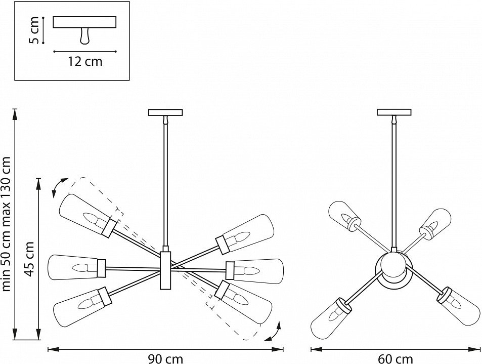 Точная форма - Несколько плафонов (Для подвесных люстр, потолочных люстр и подвесных светильников): Плафоны в разные стороны