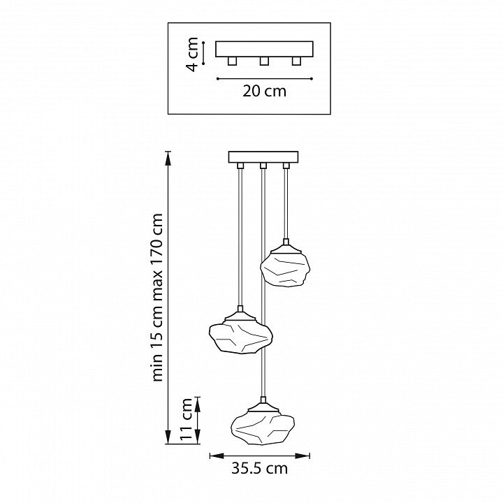 Точная форма - Несколько плафонов (Для подвесных люстр, потолочных люстр и подвесных светильников): Каскад в одну комнату