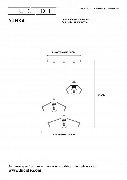 Главная Люстры и потолочные светильники Подвесная люстра Lucide Yunkai 10413/03/72