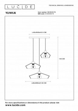 Главная Люстры и потолочные светильники Подвесной светильник Lucide Yunkai 10413/50/72