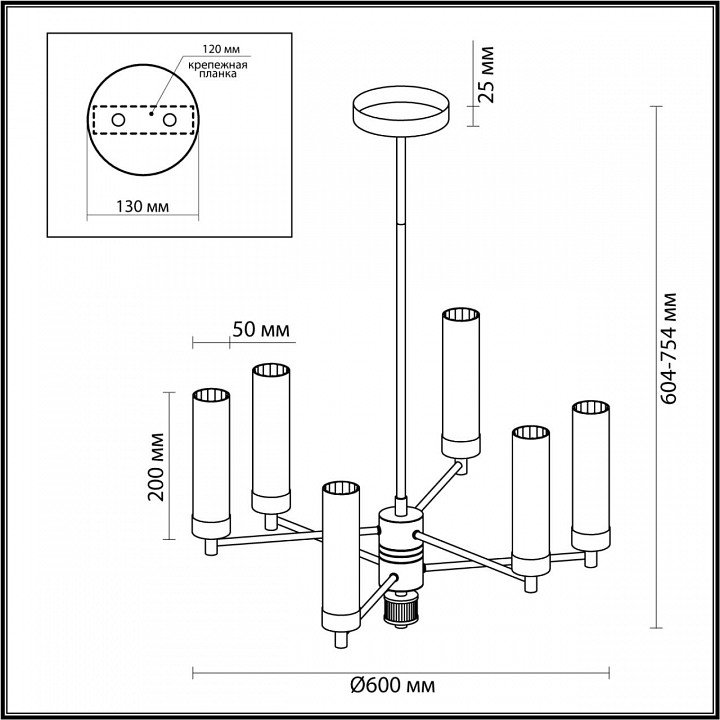 Тип крепления люстры: на штанге