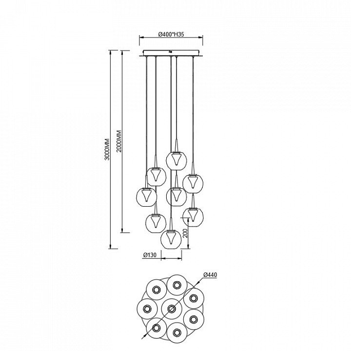 Точная форма - Несколько плафонов (Для подвесных люстр, потолочных люстр и подвесных светильников): Каскад в одну комнату