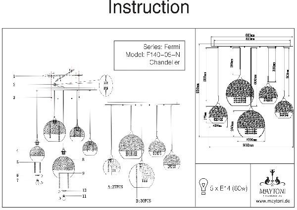 Станьте первым, кто оставит отзыв о товаре Подвесная люстра Maytoni Fermi P140-PL-170-5-N.