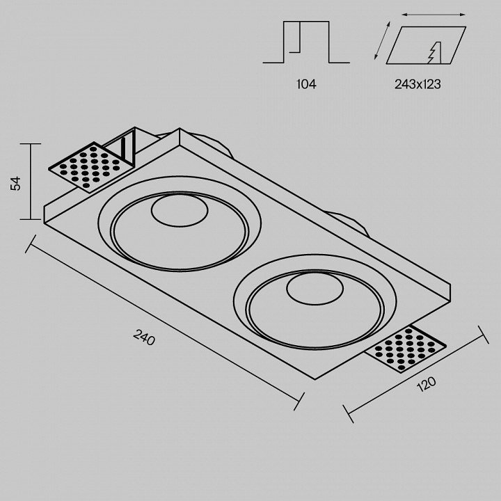 Диаметр врезного отверстия, мм: 243x123