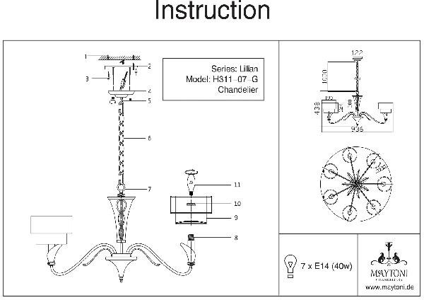 Главная Люстры и потолочные светильники Подвесная люстра Maytoni Lillian H311-07-G