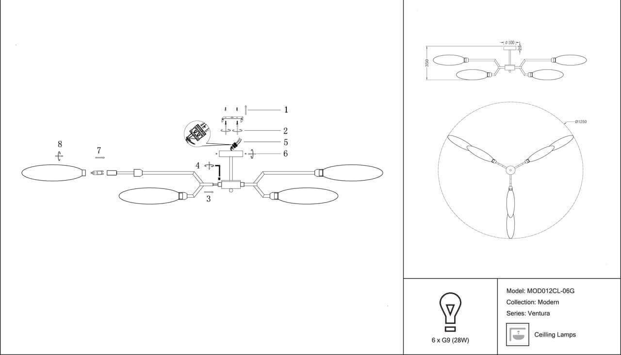 Станьте первым, кто оставит отзыв о товаре Люстра на штанге Maytoni Modern MOD012CL-06G.