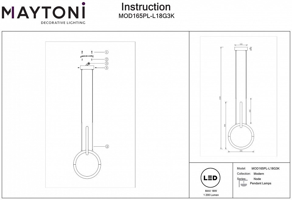 Станьте первым, кто оставит отзыв о товаре Подвесной светильник Maytoni Node MOD165PL-L18G3K.